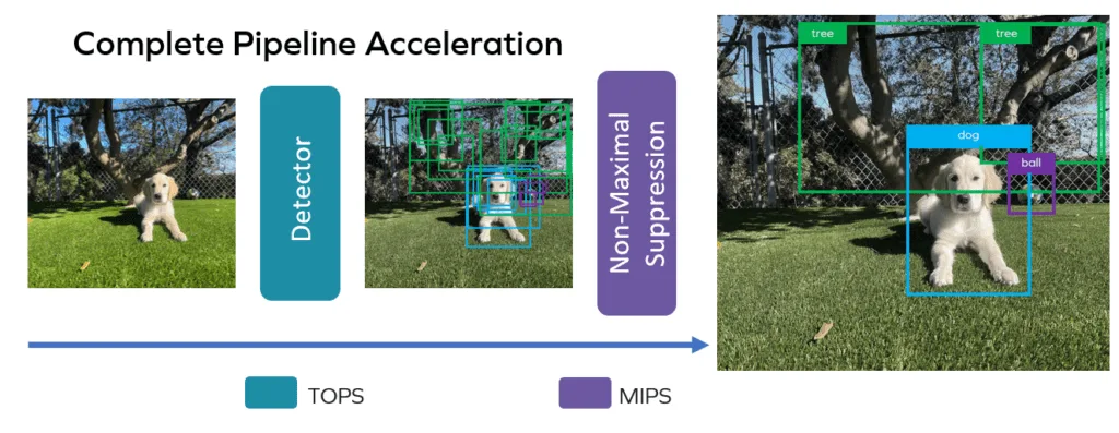 This concept, when generalized, can lead to some inspiring possibilities. Chain further beyond NMS to predict what will happen next. Entire application pipelines are possible on our processor architecture. We built our technology not to accelerate a single slice of an application pipeline but to accelerate as much of it as possible. We believe that this has enormous potential in resource-constrained deployments.